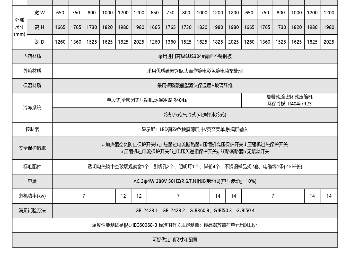 溫度範圍:-20℃/-40℃/-60℃/-70℃~+150℃