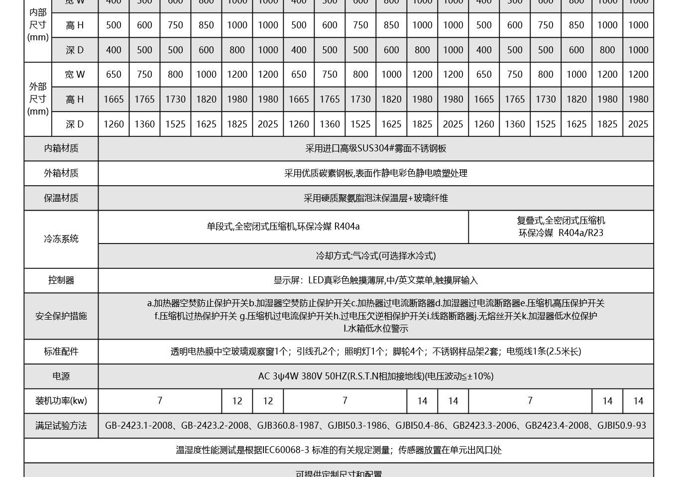 溫度範圍:-20℃/-40℃/-60℃/-70℃~+150℃
